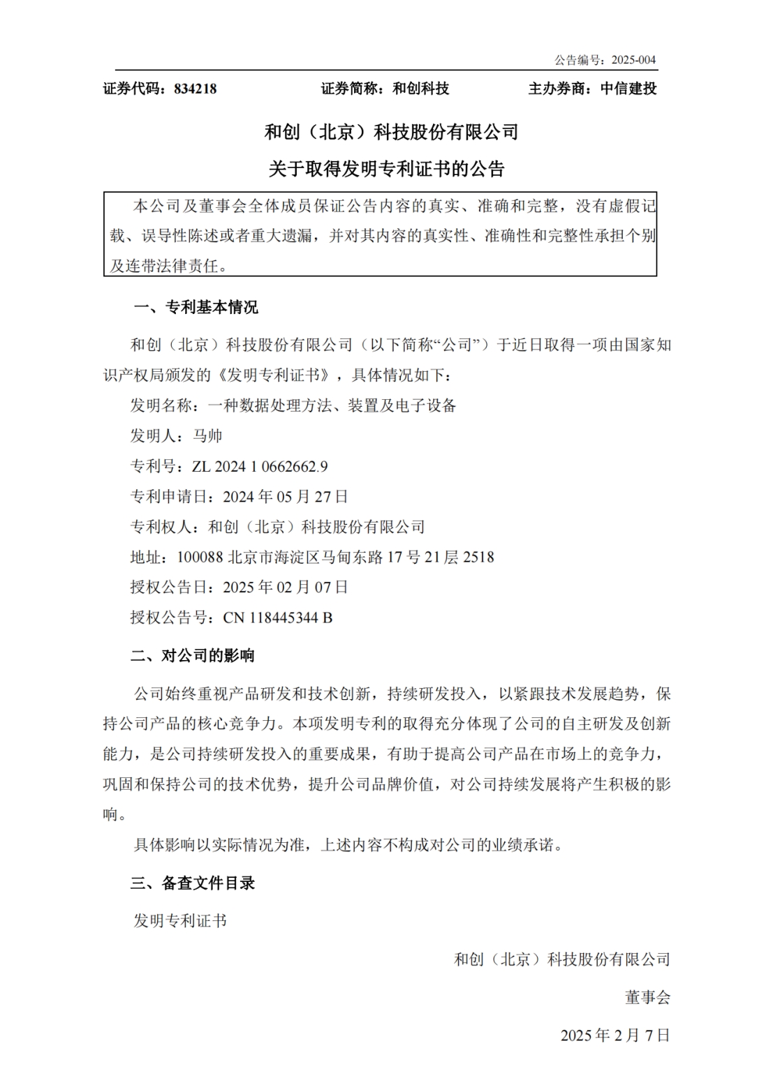 和創(chuàng)科技開年喜訊:連獲兩項(xiàng)最新專利,賦能企業(yè)工程管理系統(tǒng)智慧升級