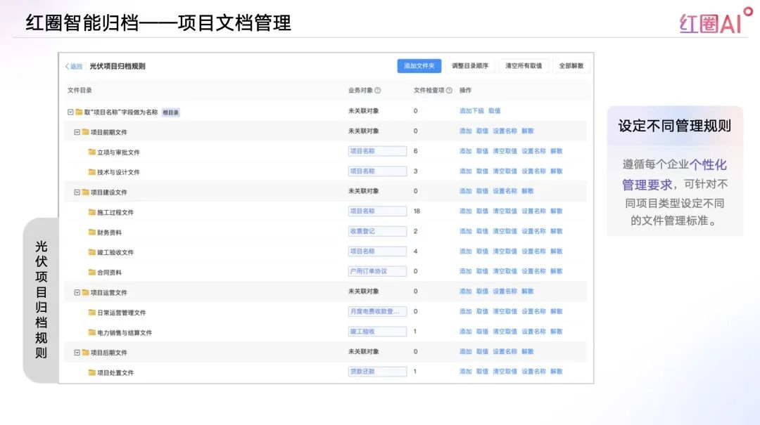 AI可根據(jù)遵循每個企業(yè)個性化管理要求,針對不同項(xiàng)目類型設(shè)定不同的文件管理標(biāo)準(zhǔn);