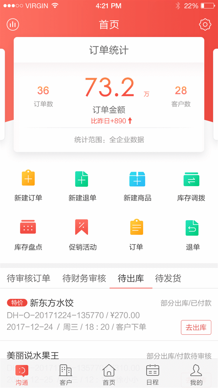 紅圈訂單手機(jī)界面示例圖