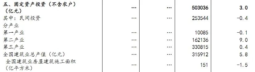 分產(chǎn)業(yè)看,第一產(chǎn)業(yè)投資10085億元,比上年下降0.1%;第二產(chǎn)業(yè)投資162136億元,增長9.0%;第三產(chǎn)業(yè)投資330815億元,增長0.4%。 -