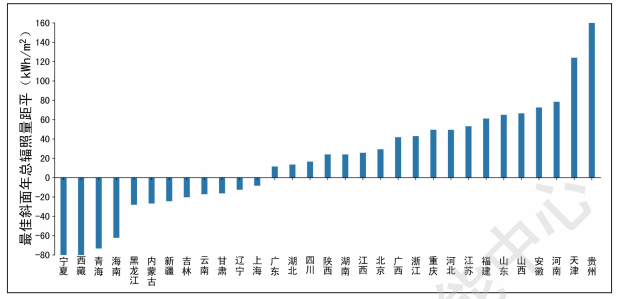 2023 年各?。▍^(qū)、市)固定式光伏發(fā)電最佳斜面年總輻照量距平(單位:kWh/m2)