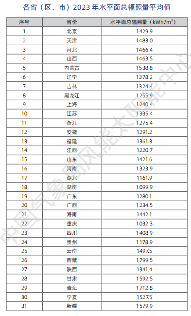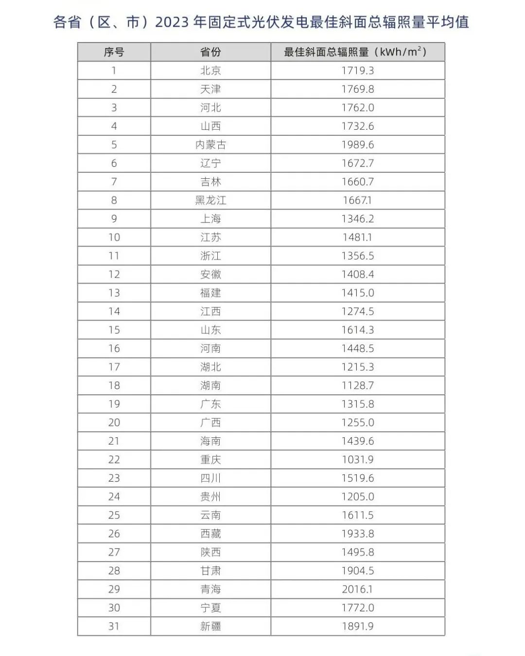最新!31省市太陽能資源與發(fā)電小時數(shù)情況