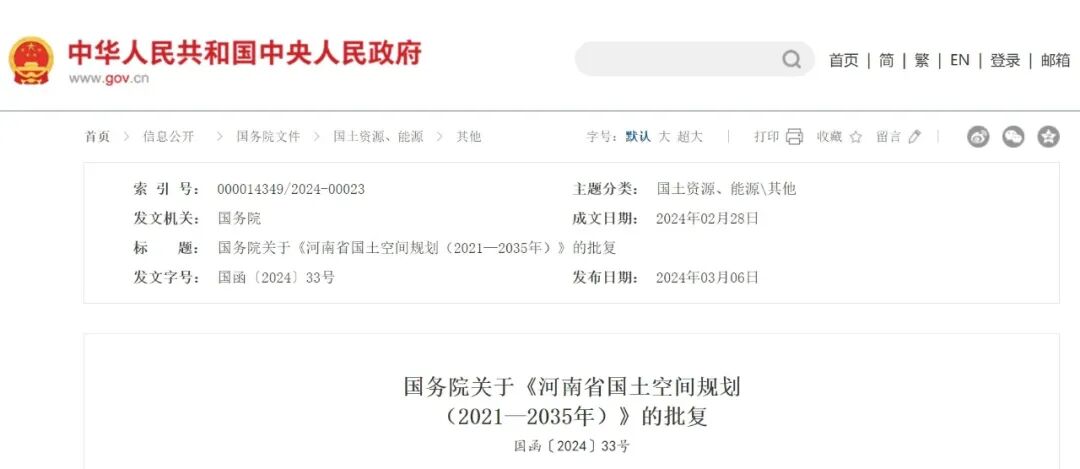 近日,國(guó)務(wù)院發(fā)布關(guān)于《河南省國(guó)土空間規(guī)劃(2021—2035年)》的批復(fù)。