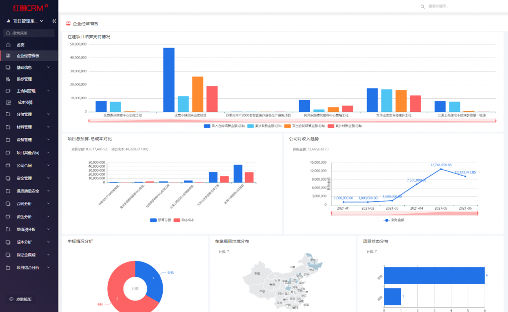 功能應(yīng)深度聚焦工程行業(yè)特性。紅圈系統(tǒng)已深入房屋建筑、市政工程、公裝工程、機(jī)電工程、新能源工程(如集中式光伏、分布式光伏、光伏EPC總包)等垂直領(lǐng)域,提煉了不同行業(yè)的基本需求場景和系統(tǒng)方案,內(nèi)置行業(yè)最佳經(jīng)營監(jiān)控指標(biāo)。